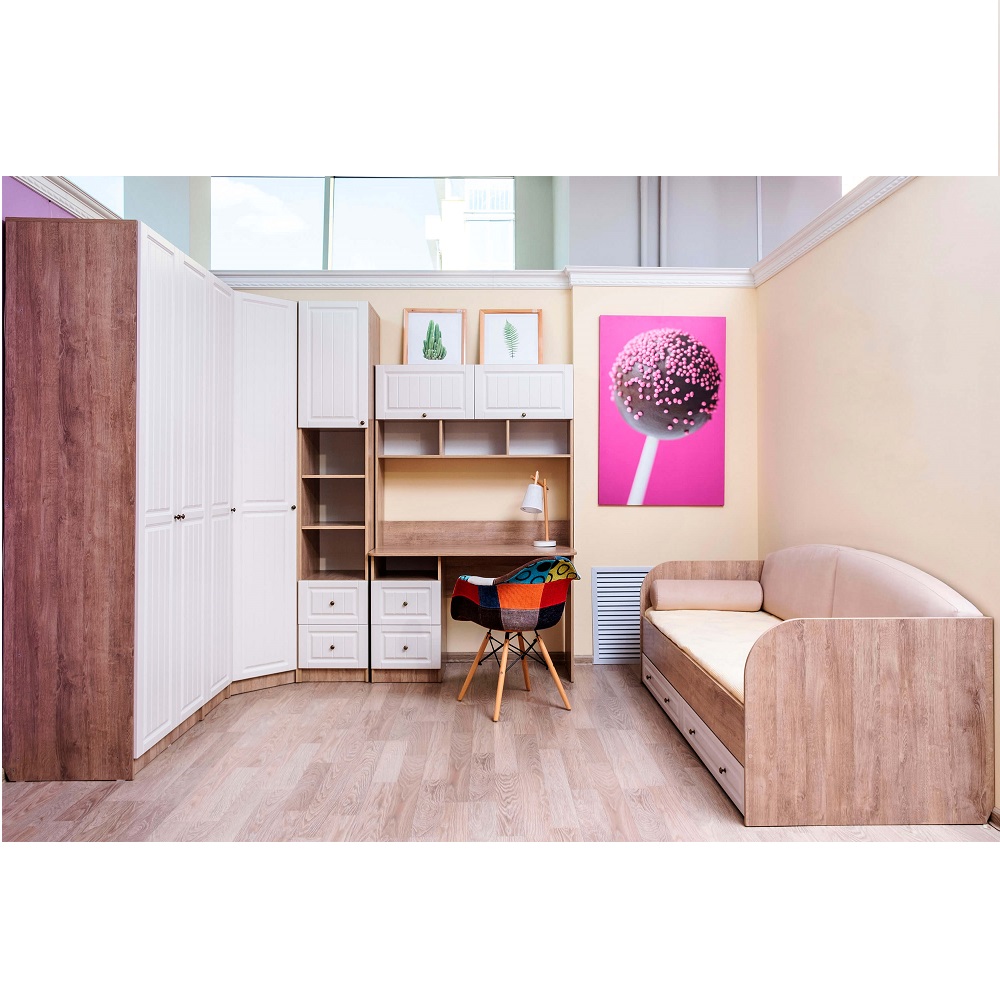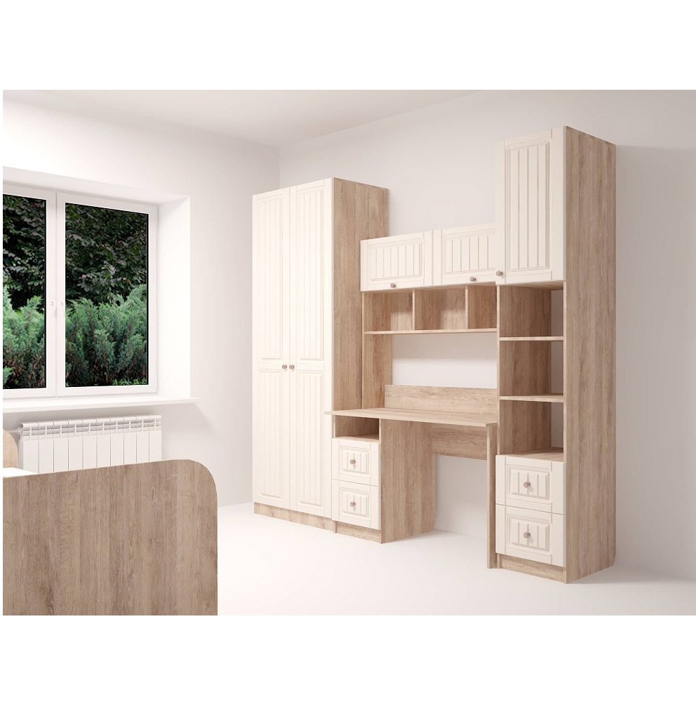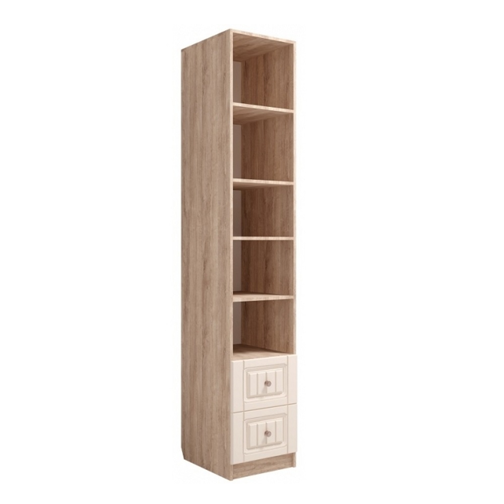 Серия мебели для спальни и подростковой Богуслава будто окутывает окружающую обстановку теплом. Кремовые фрезерованные фасады из МДФ балансируют с цветом корпуса «дуб баррик». Пенал открытый Богуслава М5 может использоваться в качестве самостоятельного модуля или в составе шкафной группы. Особенности корпус ЛДСП дуб баррик фасад МДФ, ПВХ-пленка крем-брюле с фрезеровкой ударопрочная кромка металлические ручки «античная бронза» шариковые направляющие на ящиках петли с доводчиками на фасадах